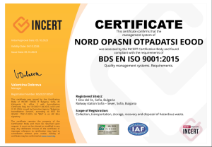 In order to carry out its activity in the trading of hazardous waste, Nord Hazardous Waste applies the waste classification standards laid down by the EU and applicable to Bulgaria as a member of the EU.